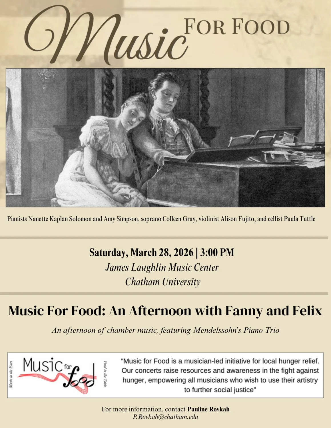 Music for Food: Romantic Masterpieces, featuring Mendelssohn’s Piano Trio